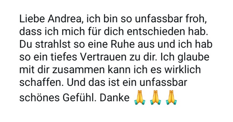 Ich begleite dich persönlich und genauso, wie es für dich passt. Ich weiß, wie du dich fühlst und helfe dir, dich zu erkennen und dich zu befreien - Schritt für Schritt und immer an deiner Seite.